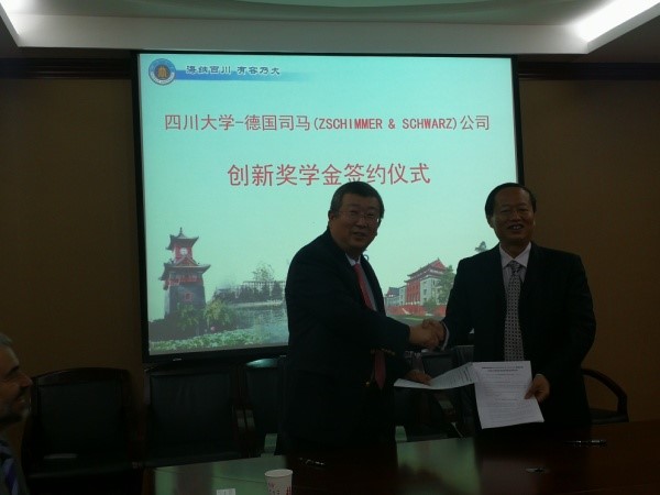张建华总经理和何有节院长分别代表司校企双发在“德国司马化学(ZSCHIMMER & SCHWARZ)有限公司与四川大学8bo足球比分