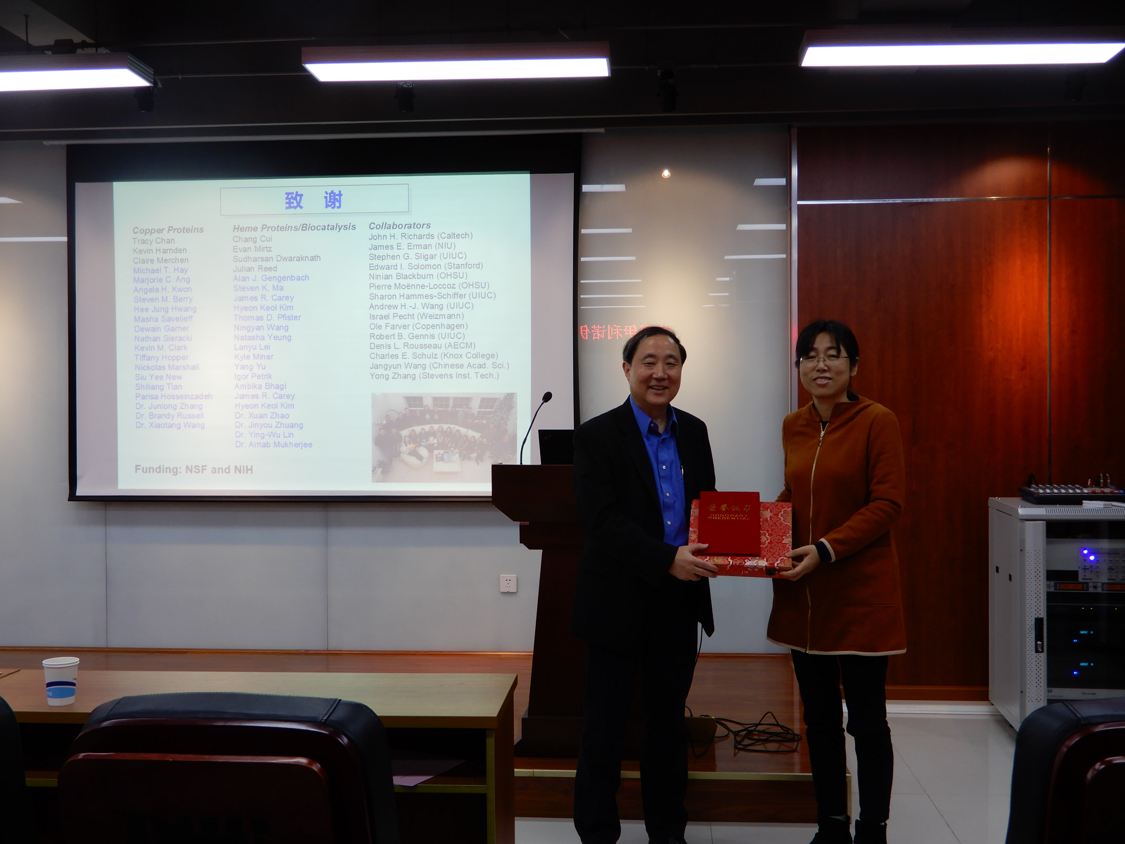 报告会后,林炜教授向陆艺教授颁发了“生物质科学与工程”论坛证书并赠送纪念品。