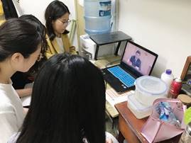 【学生在实验室收看直播】 【学生在寝室收看直播】