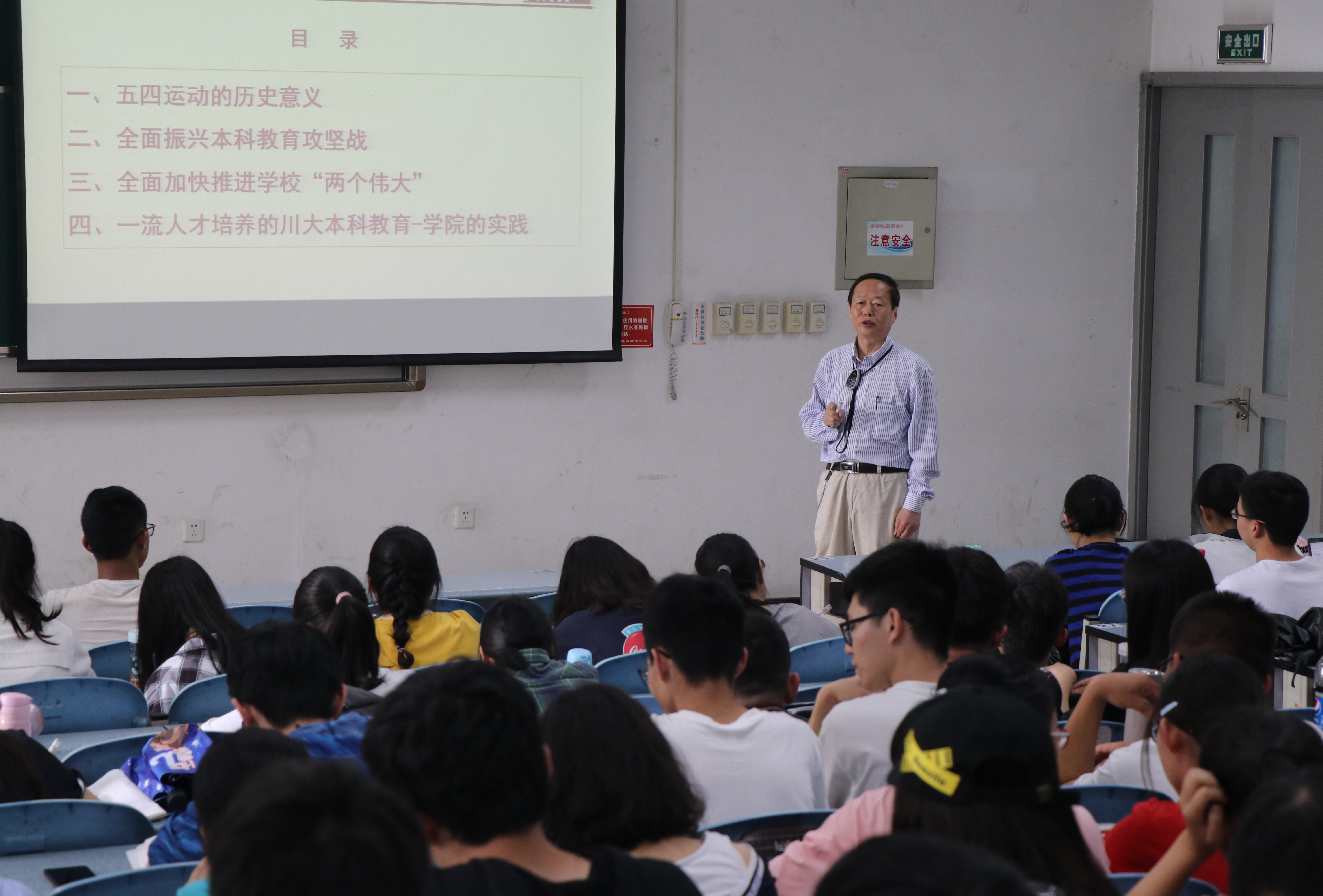 院长何有节教授来到江安校区综合楼C座205教室,为2018级本科生讲授以“五四运动与我们”为主题的党课。