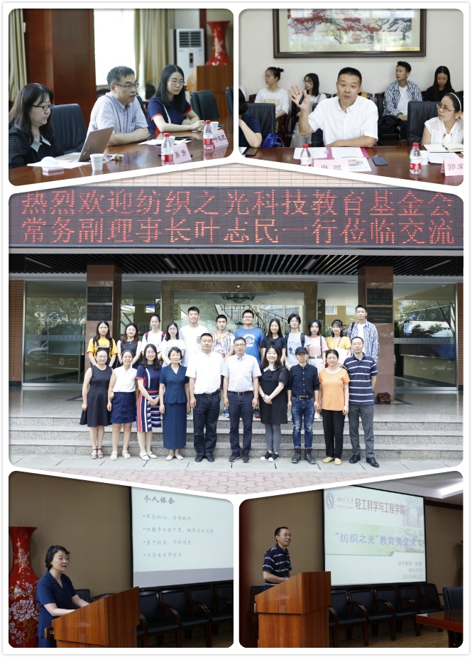 2019年6月12日,纺织之光教育科技基金会副理事长叶志民、中国纺织服装教育学会副秘书长白静、《中国纺织》杂志社新媒体部主任易芳赴8bo足球即时比分