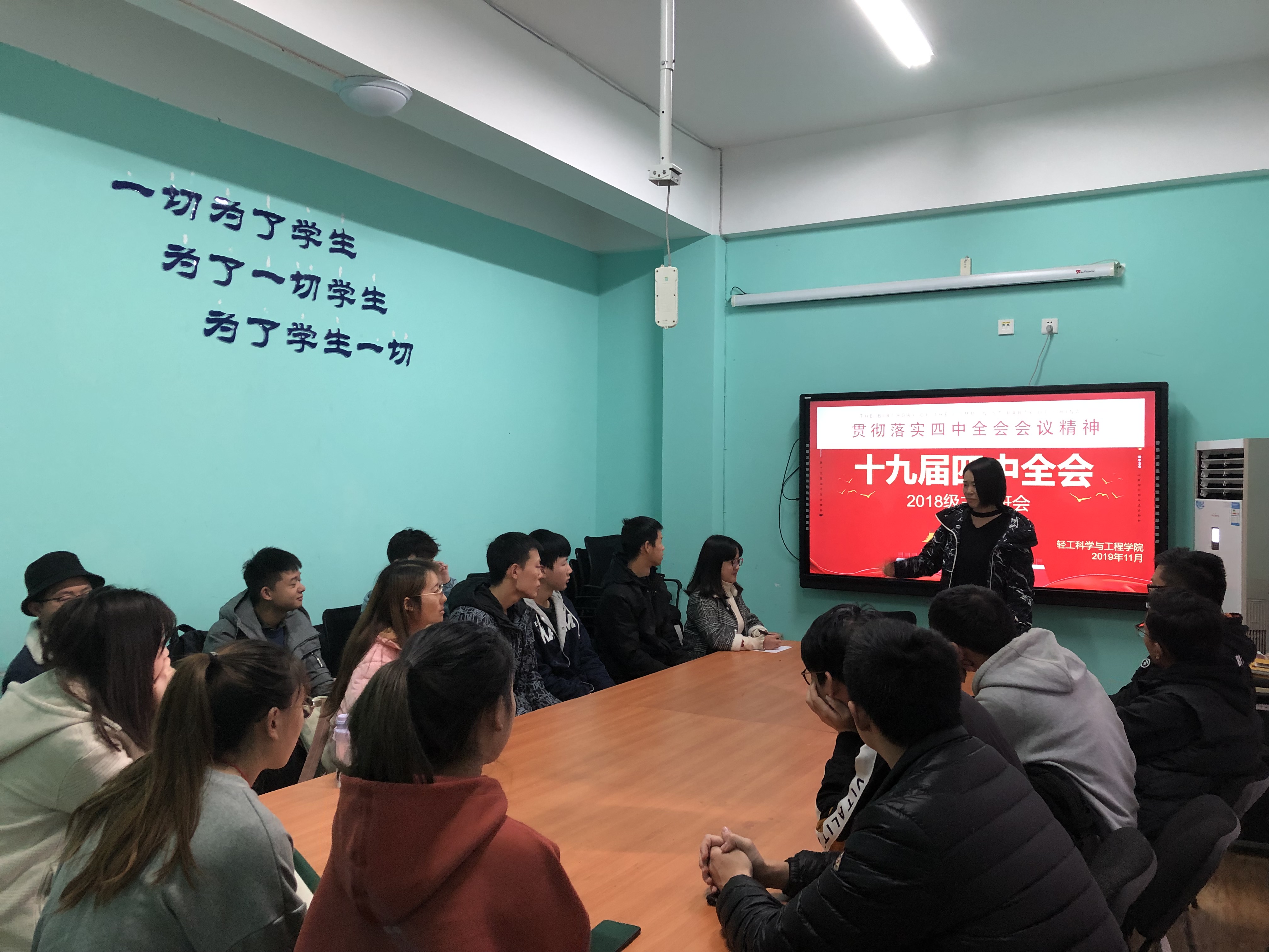 在2018级本科生中通过主题团日活动和主题班会的形式展开深入学习十九届四中全会精神的活动。