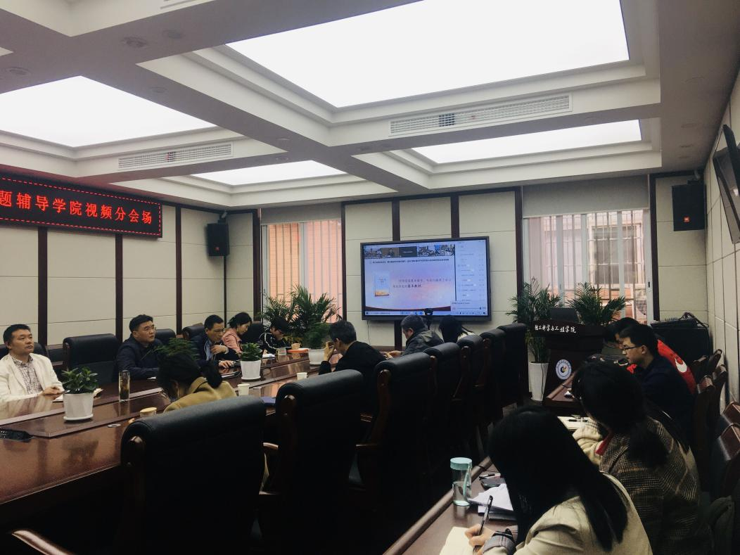 中层领导班子、两委委员、专职组织员、工会主席、支部书记及全体辅导员,在纺工附楼205会议室参加了分会场学习。