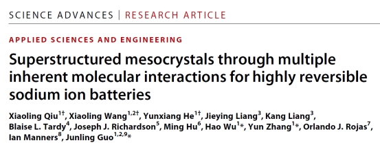 为第一单位作为在线封面论文发表在国际顶级期刊《Science Advances》上,题为“Superstructured mesocrystals through multiple inherent molecular interactions for highly reversible sodium ion batteries”。8bo足球即时比分