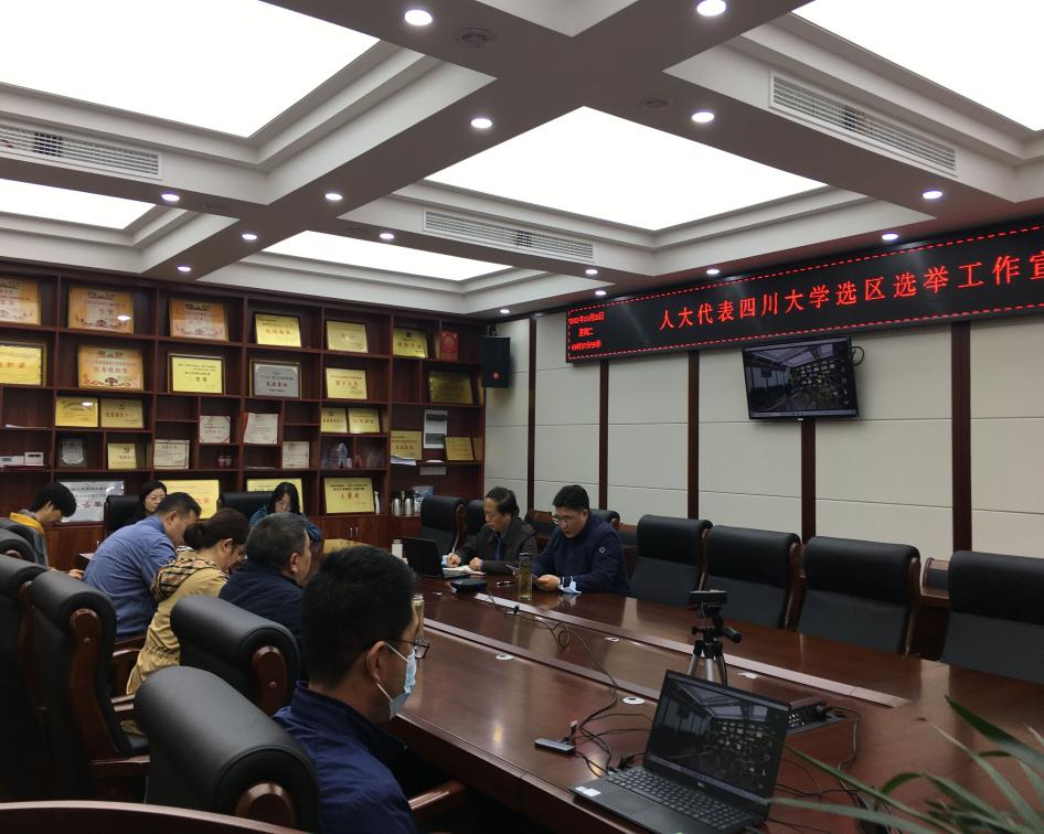 在纺工附楼205会议室举行武侯区第八届和双流区第十九届人大代表四川大学选区选举工作宣讲会。因疫情防控需要,本次会议采取线上线下相结合的方式进行,线下出席本次会议的有8bo足球比分