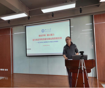 首先,李天富书记代表学院党委传达学校“双代会”暨2022年度工作布置会相关内容,并在学院新一届领导班子深入系(所)全面调研基础上,对标学校工作要求分析了我院当前面临的形势与不足。同时,结合学院工作实际,李书记提出了“四抓四促”的工作思路与举措,一是抓党的建设,促师生活力;二是抓深化改革,促内涵发展;三是抓内外联动,促资源共享;四是抓管理运行,促提质增效�