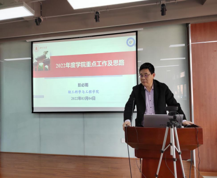 随后,彭必雨院长从学校主要目标及任务、学院情况分析、学院建设目标及思路三方面向全院教职工深入分析了学院�“十四五”和新一轮“双一流”建设发展中面临的优劣势,提出了下一步工作思路与举措。彭院长提出,各专业/学科进一步凝练学科发展方向和目标,以“碳中和+”�“医�+”、“信�+”等国家重大发展战略为契机,深入探索学科/专业交叉融合的途径,深入思考新工科如何“破题”,奋斗“十四五”、聚焦“双一流”,实现高质量人才培养、高层次人才队伍和高水平科学研究,全面推进学院高质量内涵式发展�