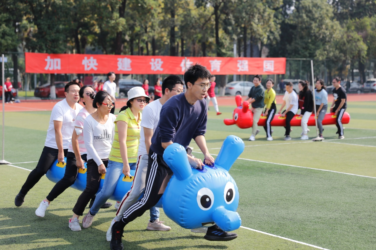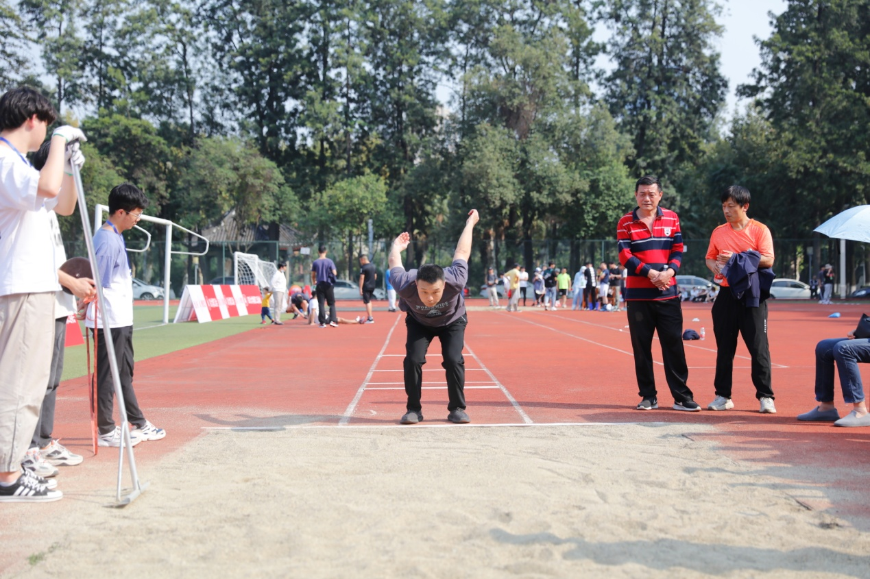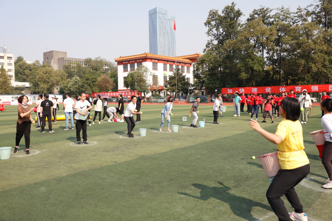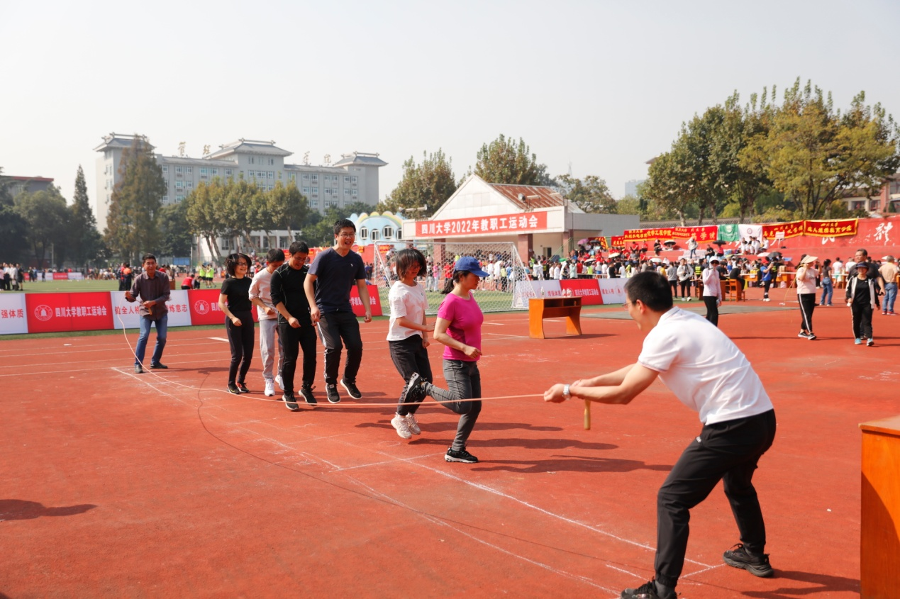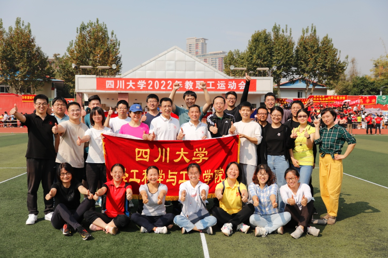 金风送爽,丹桂飘香�10�21日,四川大学2022年教职工运动会在望江校区东区体育场举行。本次教职工运动会比赛项目丰富,融竞技与趣味为一体,包含100米短跑、立定跳远、跳绳、实心球、铅球等个人项目和毛毛虫竞速、抛球入框、绕杆射门等集体项目。在学院党委李天富书记、彭必雨院长和工会陈胜主席带领下,轻工科学与工程学院47名教职工参与�86人次的比赛,与全�2个单位的运动健儿们同场竞技,展现了轻工人团结进取、奋力拼搏的精神�