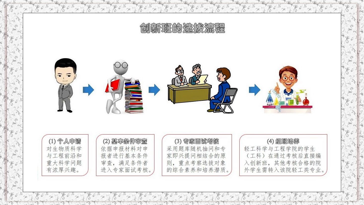 一、生物质科学与工程创新班2020�选拔条件、考核方案、操作指南详见教学处通知。(点击去往�