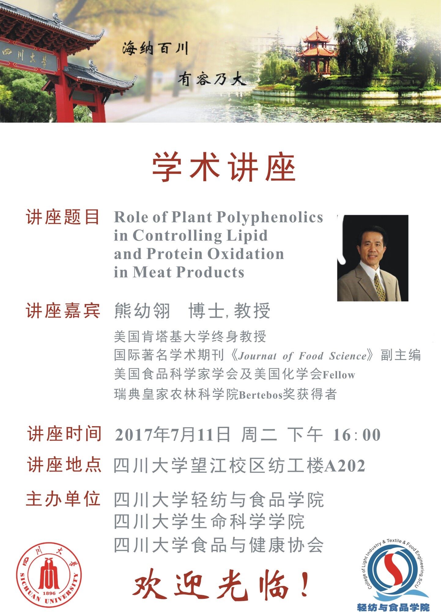 报告题目:Role of Plant Polyphenolics in Controlling Lipid and Protein Oxidation in Meat Products 报告人:美国肯塔基大学熊幼翎博士教授 报告时间:2017年7月11日(星期二)下午16:00 报告地点:四川大学8bo足球比分