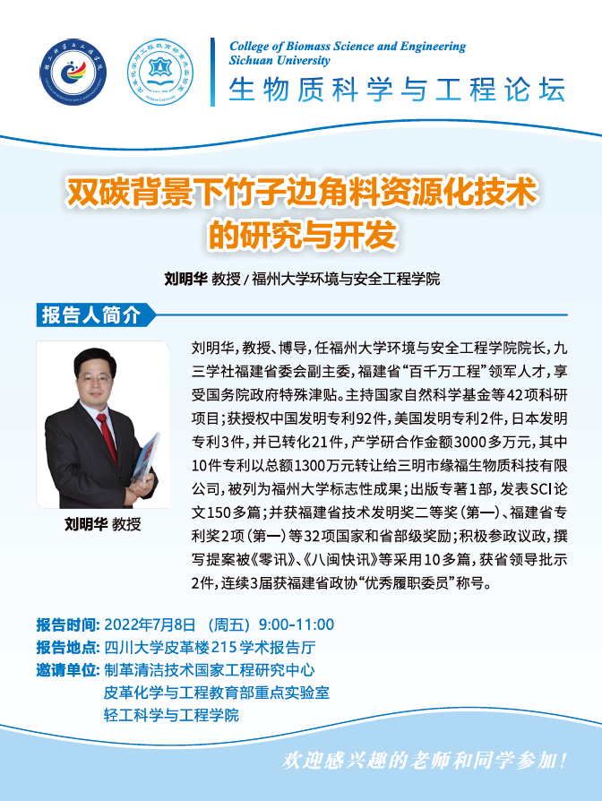 生物质科学与工程论坛:刘明华教授 学术报告