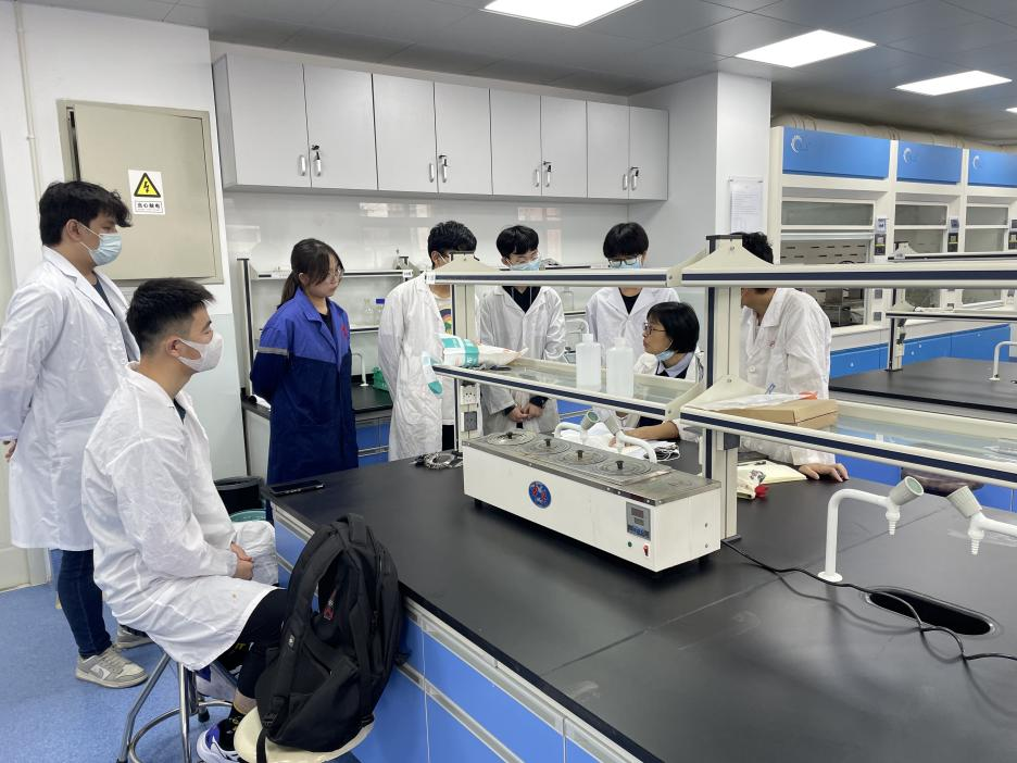 会后,老师们积极投身《皮革分析检验》实验教学各项工作之中,罗怡老师准备好了各种实验用试剂,陈慧老师指导学生们配制溶液和试剂;王忠辉老师带领助教薛鹏博调试实验用仪器设备,戴红老师、陈慧老师、助教薛鹏博带领学生们参加新购凯氏定氮仪的使用培训和进行视频录制。