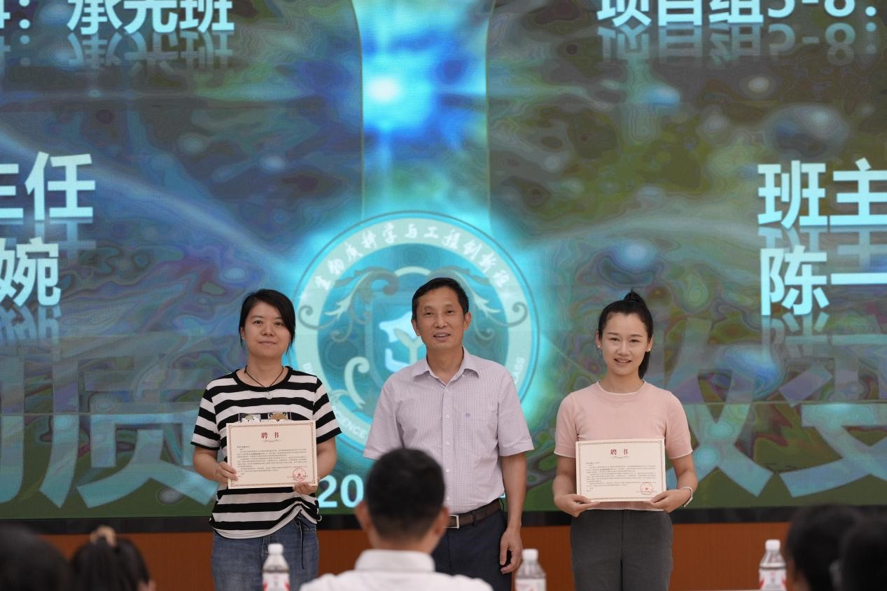李天富书记、彭必雨院长、陈意副院长、杨璐铭主任、陈胜所长为同学们颁发了创新班录取通知书,李天富书记为创新班班主任颁发了聘书�