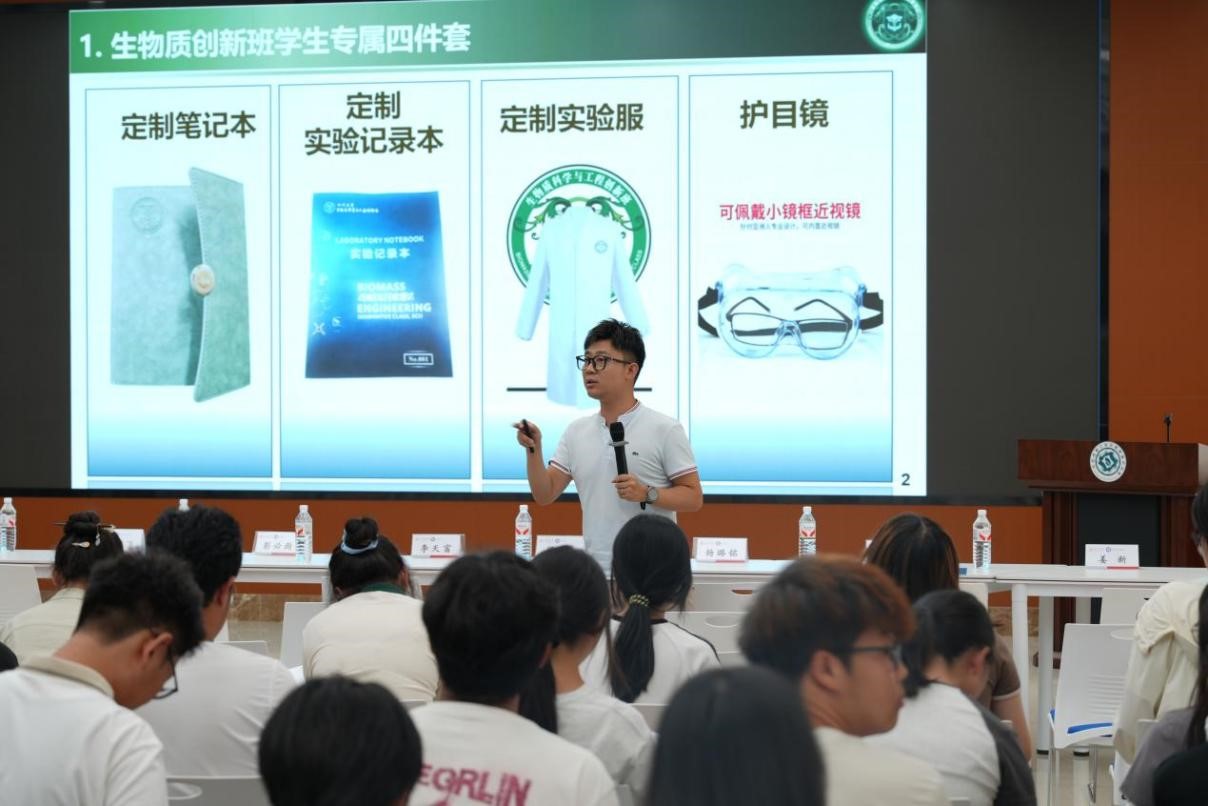 在专业介绍环节,陈意副院长详细讲述了生物质科学与工程创新班的创办初衷与历史沿革,阐明了创新班的培养目标、课程体系与教学模式。陈意副院长强调,创新班的每一项教学安排都紧扣“创新”与“卓越”两大核心,要让同学们在系统的培养中,成长为既懂理论又善实践、既扎根本土又放眼世界的高素质人才,真正肩负起推动生物质科学与工程领域发展的时代使命�