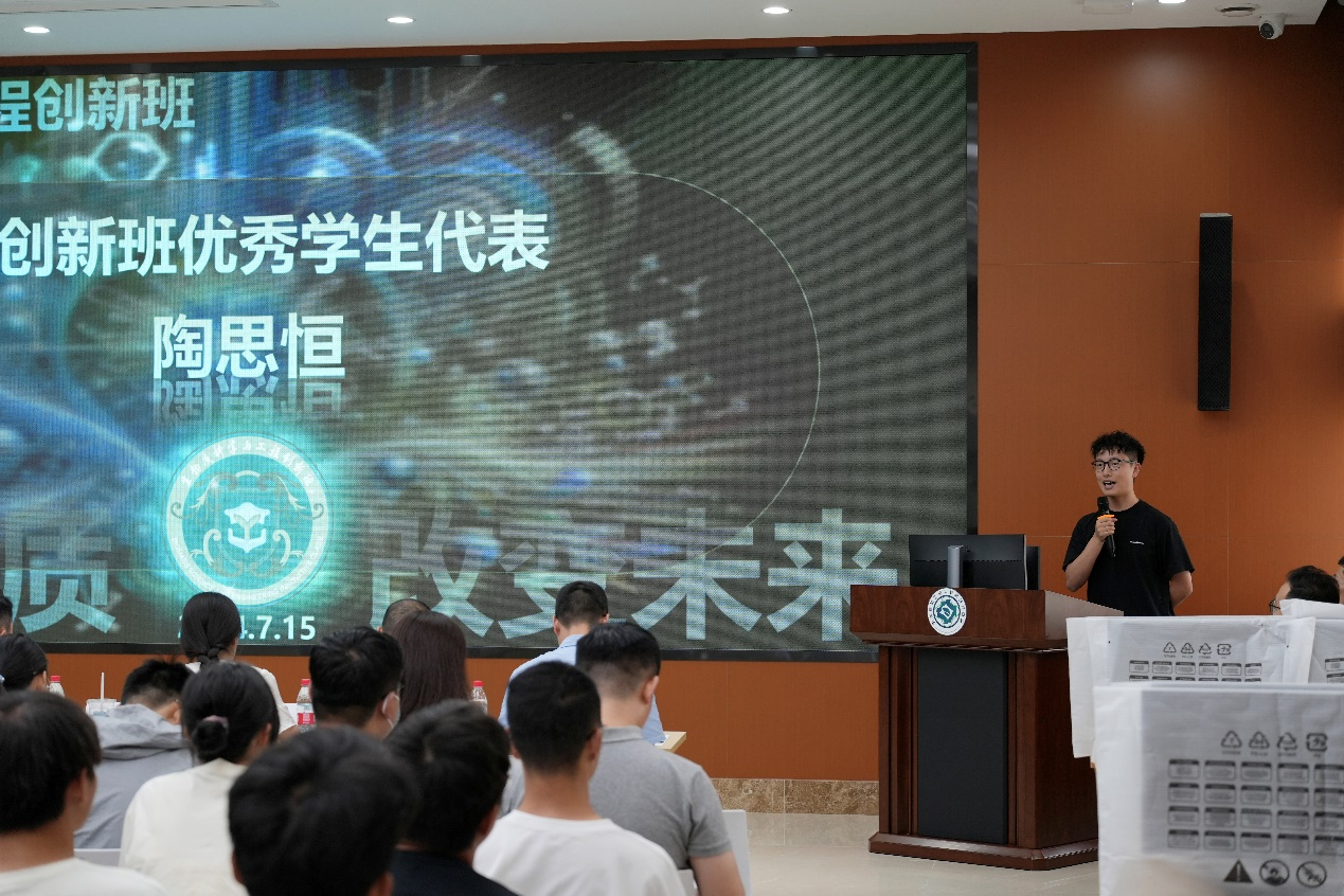 随后�2021级创新班优秀学生代表陶思恒上台发言,分享了他在创新班学习生活的宝贵经验和感悟�