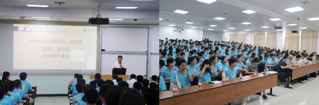 2024�9�11日下午,四川大学轻工科学与工程学�2024级本科生开学典礼在江安校区第一教学楼B307顺利举行。出席开学典礼的有轻工科学与工程学院党委李天富书记、院长彭必雨教授、副院长陈意教授、副院长迟原龙教授、教导员邱华明老师、生物质与皮革工程系系主任林炜教授、食品工程系系主任吕远平教授、教师代表王亚楠教授�2024级本科生辅导员余昕玲老师以及2024级全体新生。开学典礼由党委副书记冯国涛副教授主持�