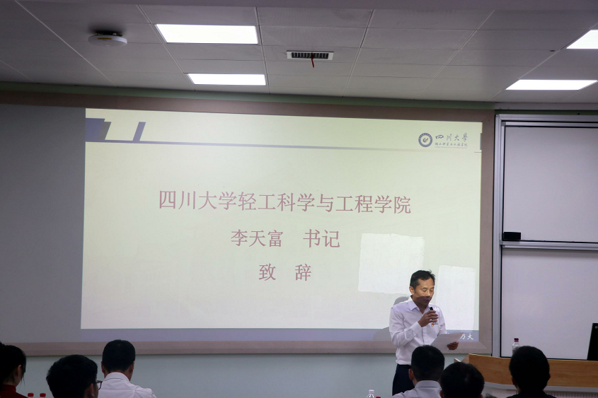 开学典礼在庄严的国歌声中正式开始。首先,党委李天富书记致辞。李书记代表学校党政对顺利进入轻工科学与工程学院的全�2024级本科生新同学表示最衷心的祝贺,对大家的到来表示最热烈的欢迎,并向全体本科新生提出三点希望。第一,继续保持勤奋上进、不畏艰难的学习态度,做学习中最好的自己。希望大家尽快适应大学学习方法,不断增长个人才干,努力成长为勤奋刻苦的时代青年。第二,尽快适应开放自由、全面发展的大学环境,做大学中最好的自己。希望大家充分运用一流大学的教学资源,不断推动自我成长、促进自我进步,努力成长为全面发展的合格人才。第三,努力塑造人格健全、本领过硬的优良品质,做社会中最好的自己。希望大家进一步树牢社会主义核心价值观,持续塑造健全人格、锤炼过硬本领,成长为与双一流大学相匹配的品德高尚、气质优雅、才干出众的社会主义事业接班人,为国家轻工行业的高质量发展作出川大人应有的贡献�