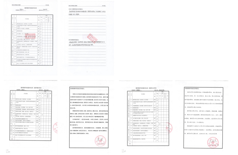 食品科学与工程教研室组织教师开展课程自评、同行听课及评教工作,部分课程开展情况良好。图1为《食品分析》课程学生、教学督导及同行评教样本。