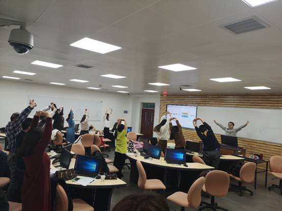 现场授课环节由参赛教师进�10-15分钟现场授课。参赛教师们精心制作了赛�PPT,巧妙地运用启发式讲授,通过一个个设问引导学生不断思考,学生代表们予以积极回应,比赛现场可谓是精彩纷呈,吸引了不少在周边教室上自习的学生前来旁听�
