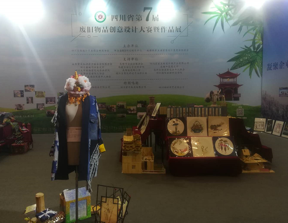 2018.11.10成都设计周在新会展中心举行,业部分师生出席,学生作品参加此设计周上举办的四川省废旧物品创意设计大赛获得十佳作品称号�
