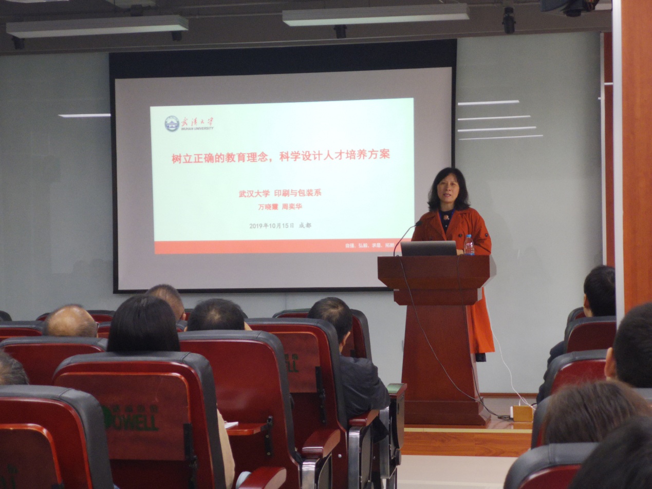 接下来,万晓霞教授为大家做题为目:《树立正确的教育理念、科学设计人才培养方案》的报告,从成人教育与成才教育、本科人才培养目标、印刷专业培养方案三个方面介绍了武汉大学印刷与包装系在本科人才培养方面进行的探索。参培老师对专业的招生情况、学生的专业归属感等问题进行了询问,万教授知无不言言无不尽,毫无保留地传经送宝。