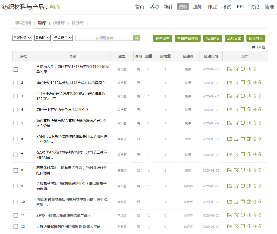 姚果老师在《纺织材料与产品科技进展》教学中,通过前期不断熟悉网上教学方法与途径,最终选定依托超星学习通协同QQ群的方式进行授课。课前经过充分准备,将相关参考文献与资料,录制PPT讲解视频,教案、课堂问题、作业以及课后作业上传至学习通,为顺利进行该课程网上教学打下坚实基础�