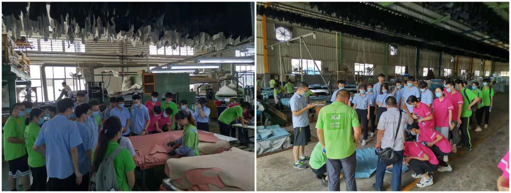 此外,实习师生还集体参观了多家皮革企业,一起感受了不同的8bo足球比分与制革理念,通过对各种制革生产线和不同风格皮革产品的横向比较,同学们对皮革行业生产现状以及未来发展需求都有了更为深刻的理解。