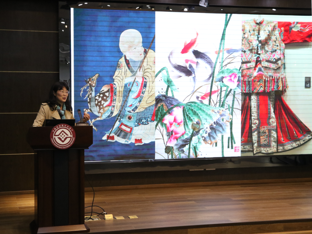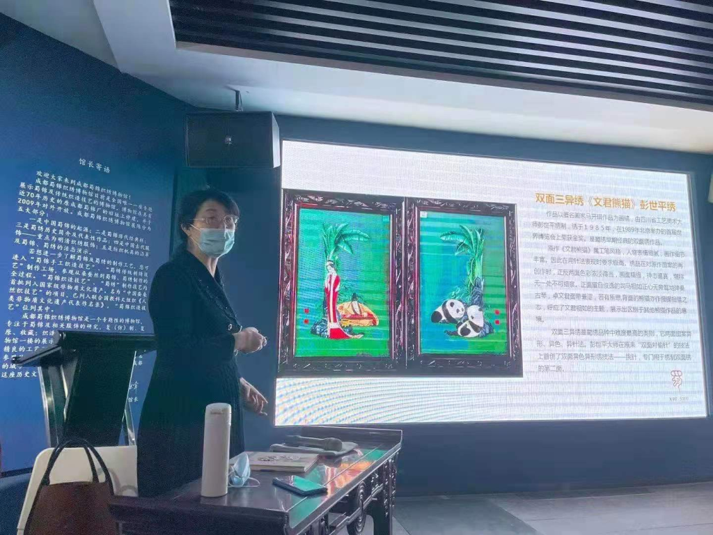 图1.赵敏老师受邀在蜀江锦院博物馆进行“蜀绣之美”专题讲座