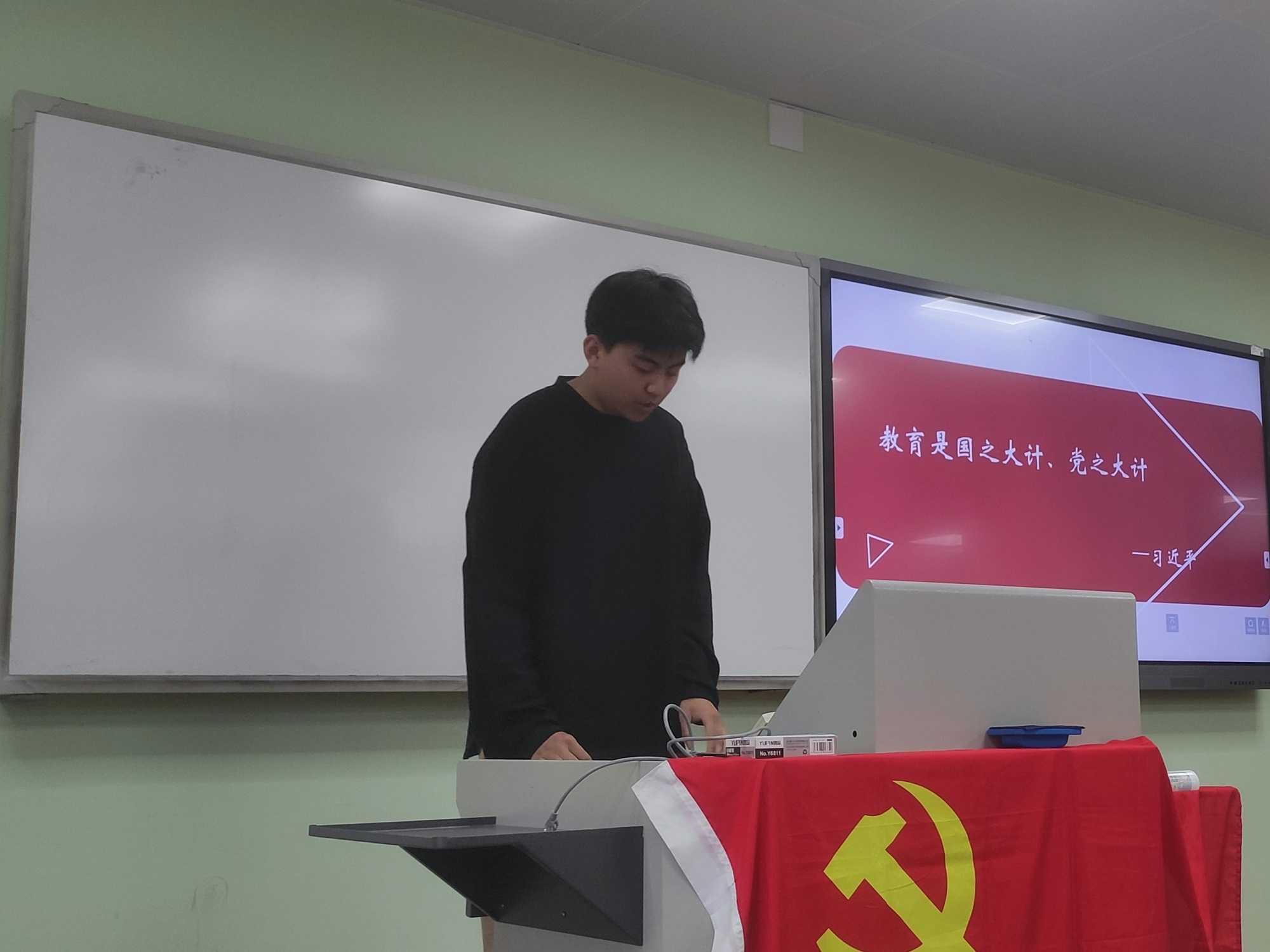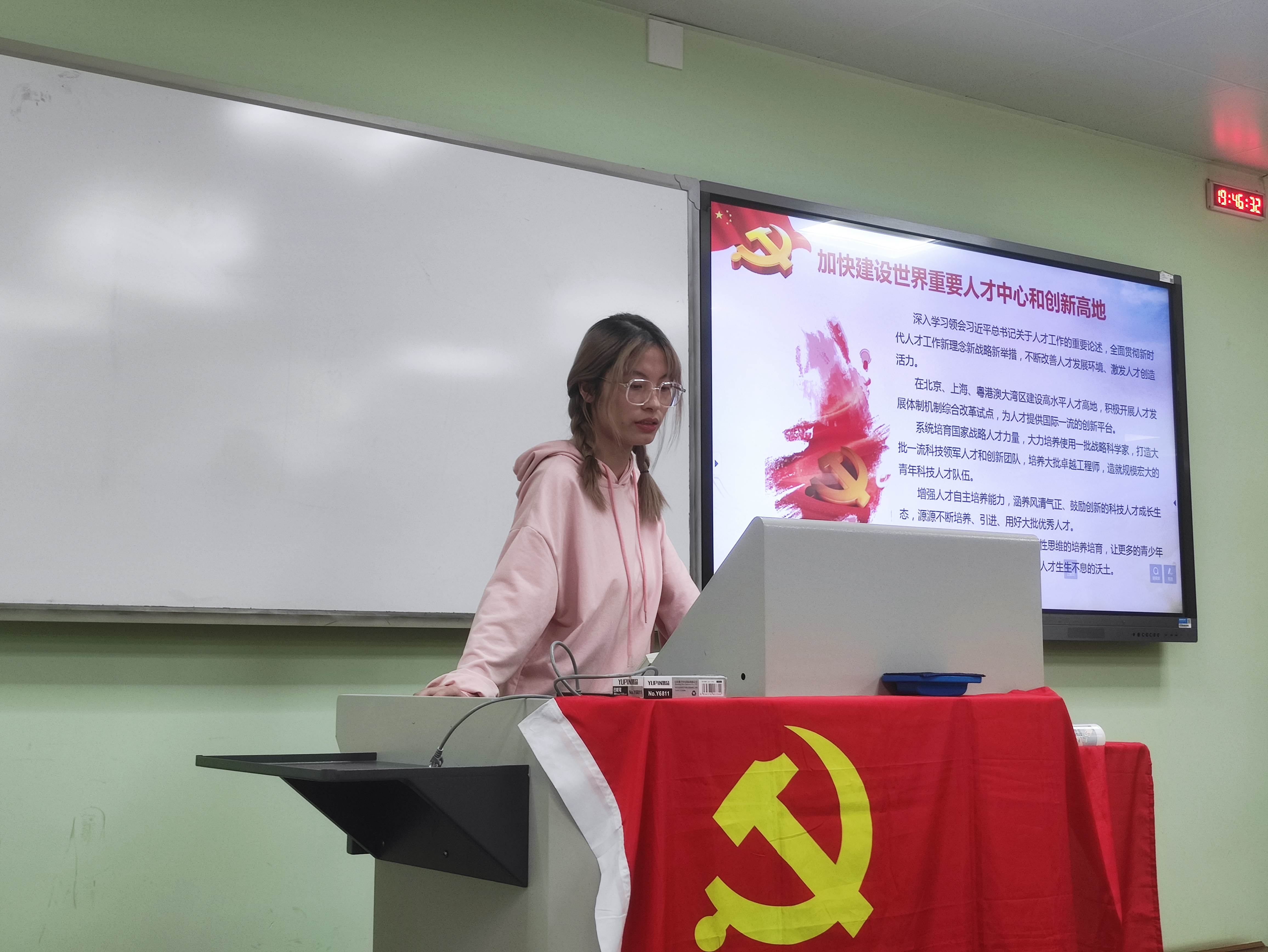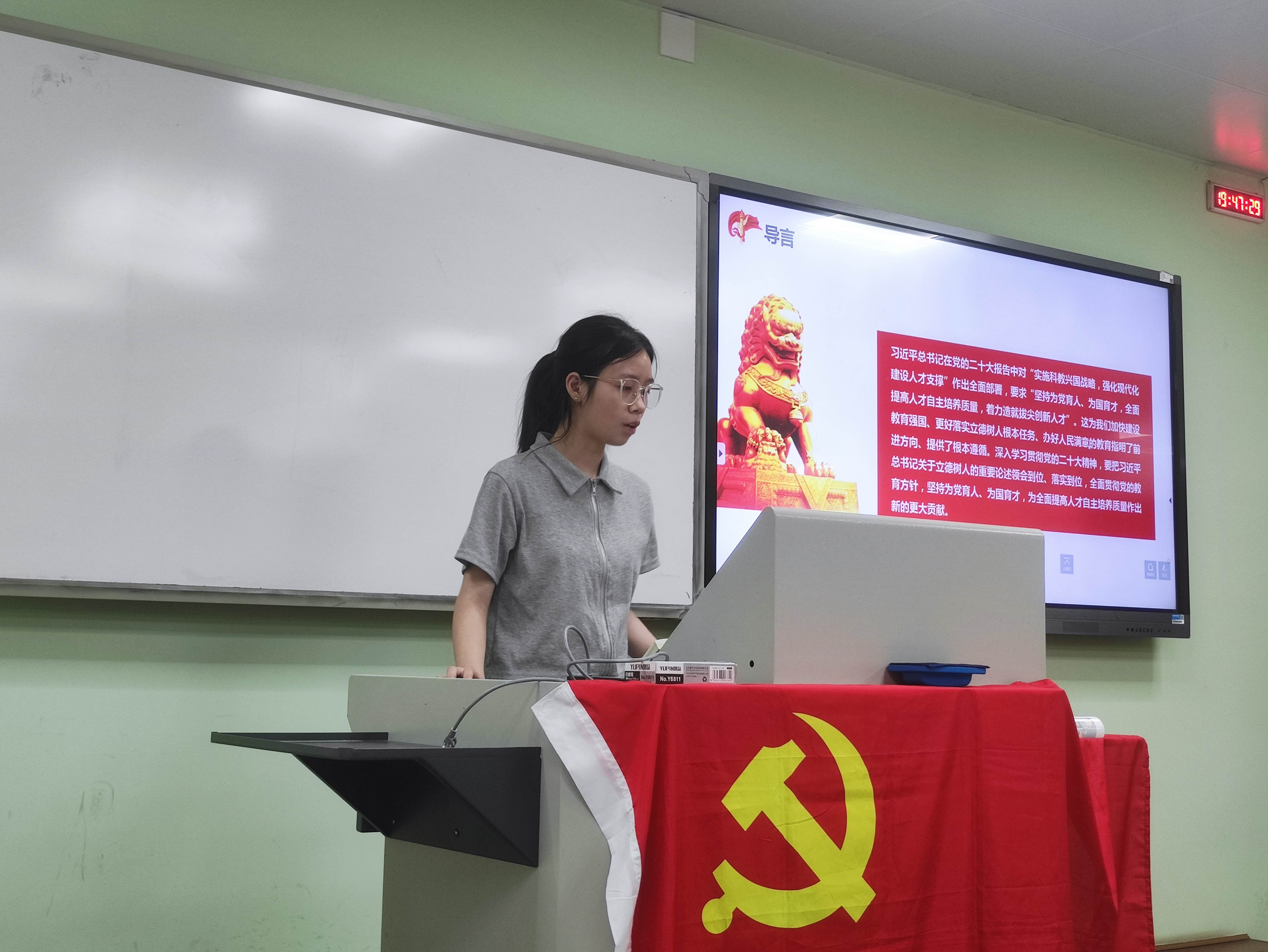 吕忱阳同志从高等教育的角度出发,全面介绍了习近平总书记对于教育、科技、人才的整体论述,尤其是在建设中国特色、世界一流大学的进程中,坚持立德树人根本任务,建立高水平人才培养体系的新理念新要求新任务。参会党员同学就如何成为一名德智体美劳全面发展的建设者和接班人开展了积极讨论�
