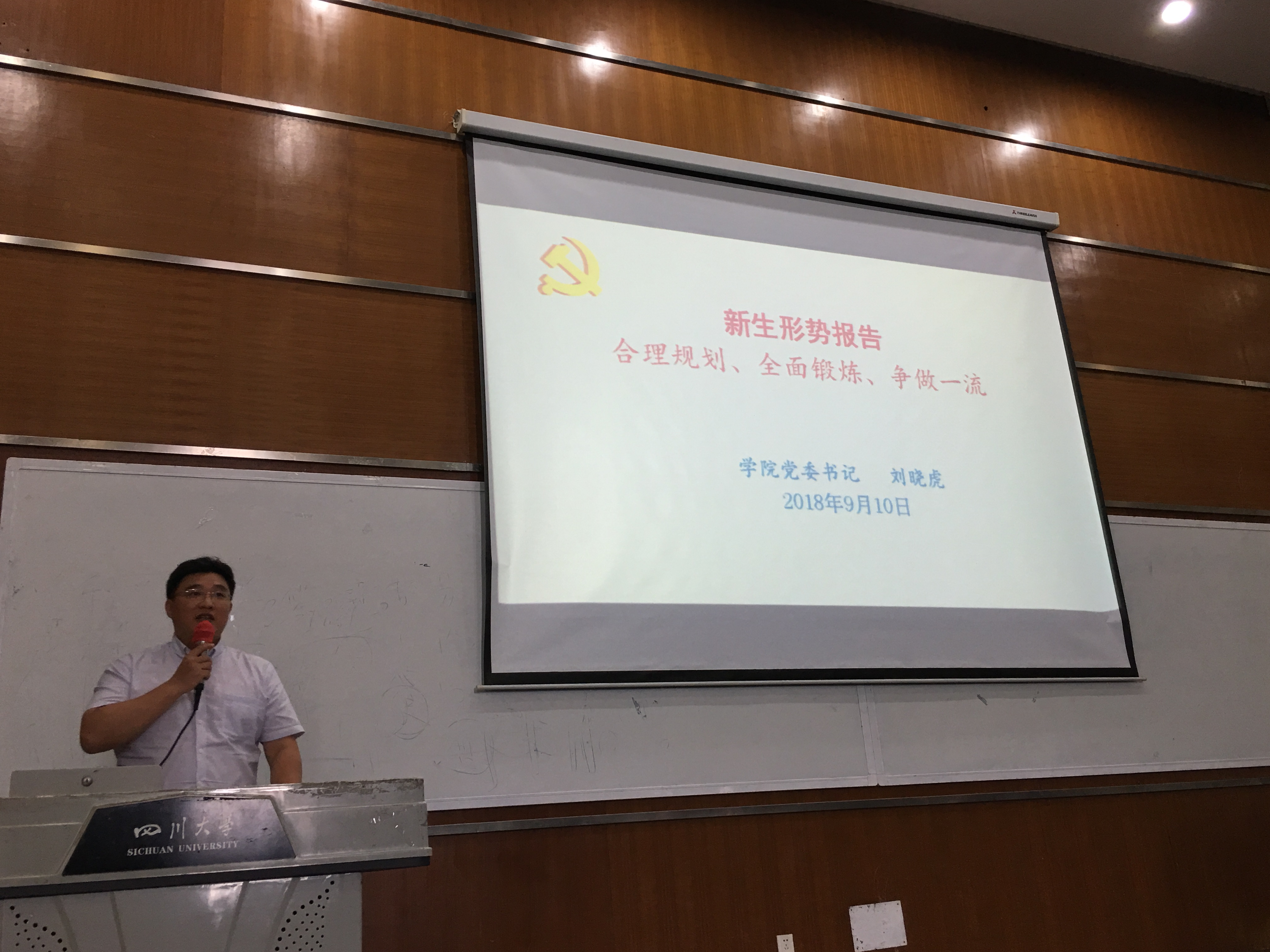 其次,刘书记号召2018级新同学要定位一流发展坐标、明确努力方向、落实当前行动,主动融入一流人才培养的校园文化氛围中。最后,刘书记向2018级新同学提出四点希望:一是要做好大学开篇,尽快完成角色转变,积极适应大学学习、生活;二是要胸怀大志,并脚踏实地,一步一个脚印走好人生每一步;三是处理好自由和规范之间的关系。在大学相对自由的环境中,一定要规范自己的行为、养成良好的习惯,加强自律,把握好自己的人生方向;四是要有一颗平和与包容的心态,处理好同学、朋友、师生之间的人际关系,让自己的学习能力、创新能力提高的同时,拥有良好的人际交往能力,为自己以后的人生发展不断积累宝贵的经历与资源。本次新生形势报告会在同学们热烈的掌声中圆满结束!
