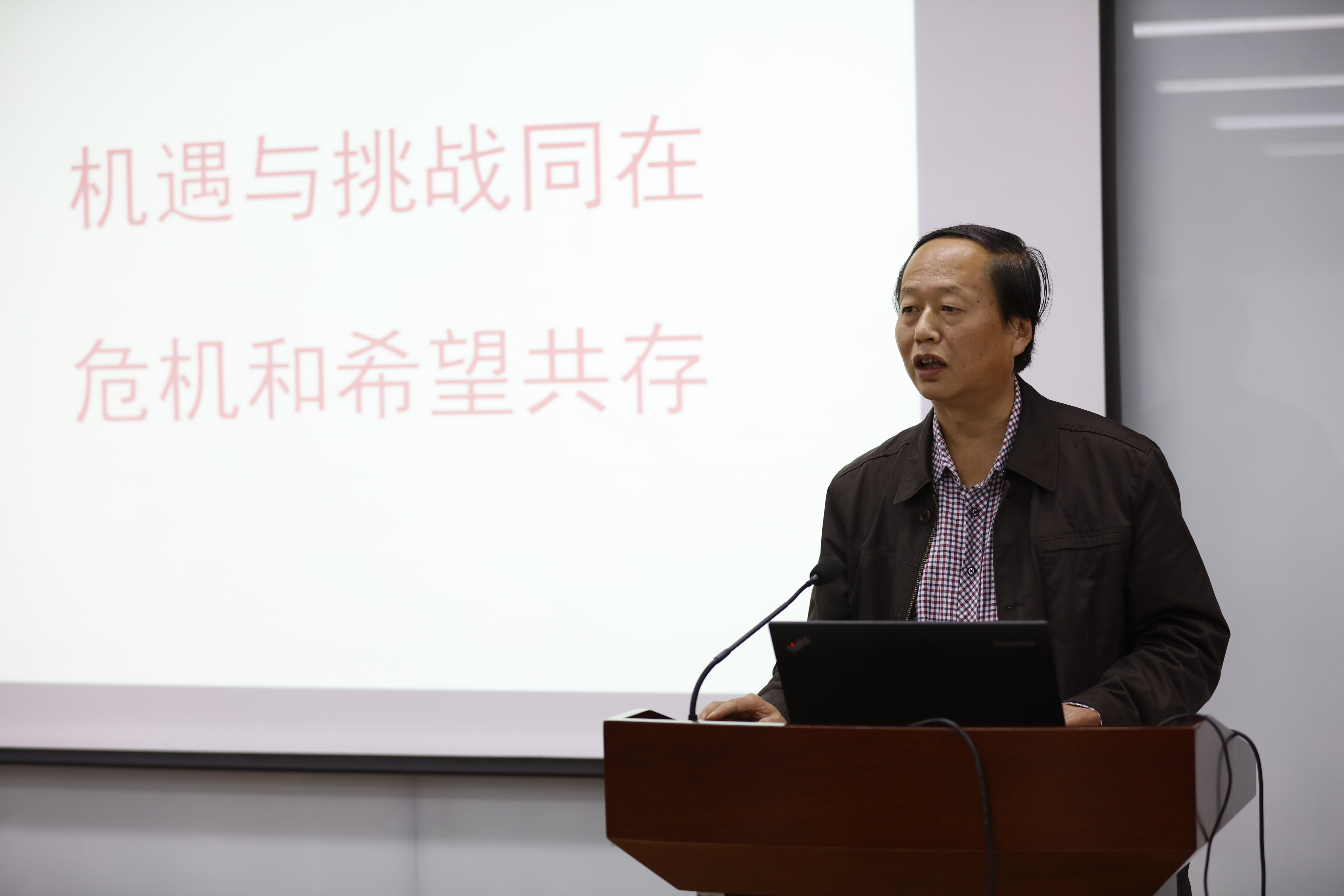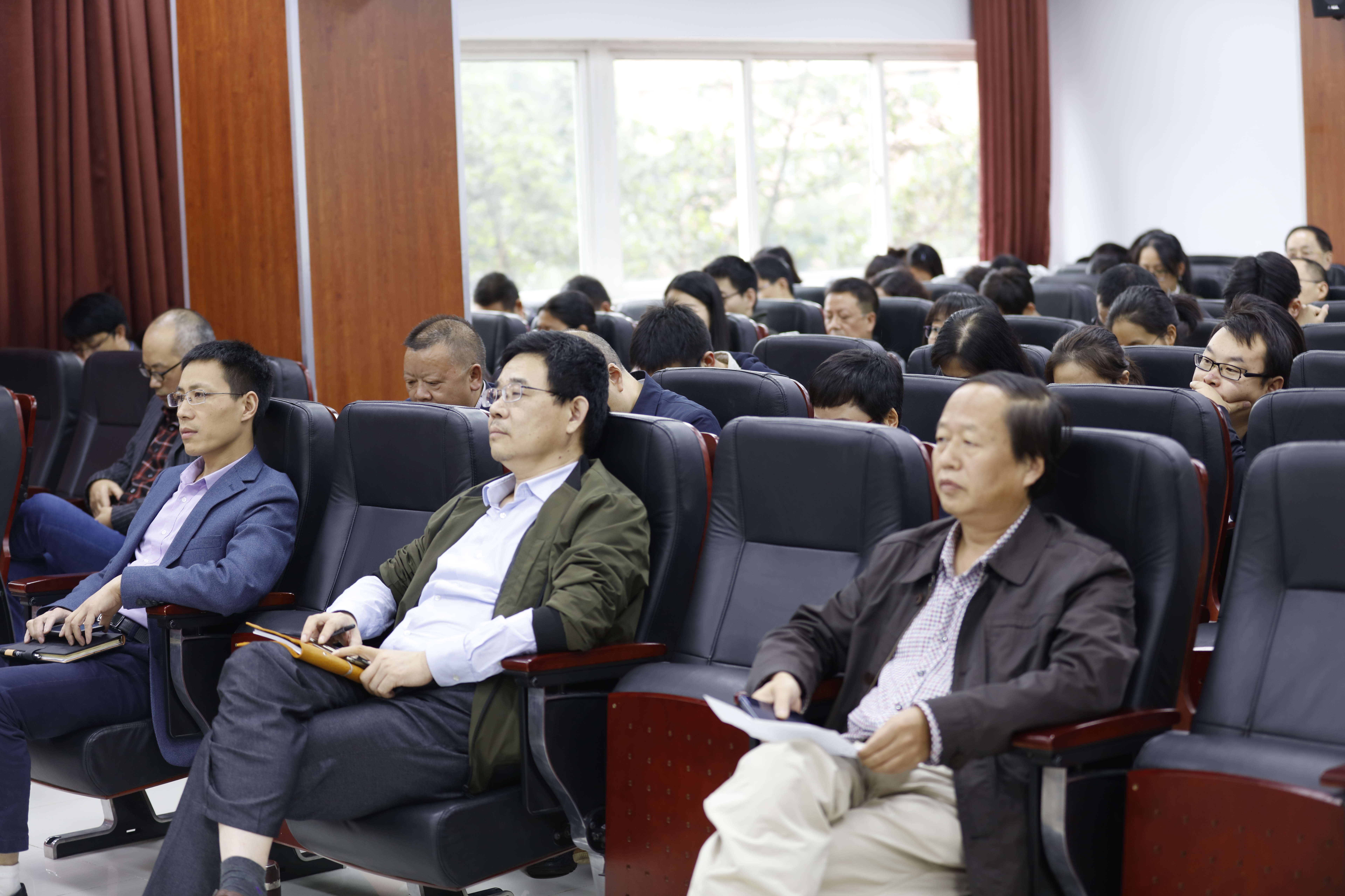 2019年1023日下午,8bo足球即时比分 组织全体教师及学生党员代表,在皮革楼报告厅召开“不忘初心、牢记使命”主题教育专题党课讲授会。本次党课由院党委书记刘晓虎同志讲授,会议由何有节院长主持。