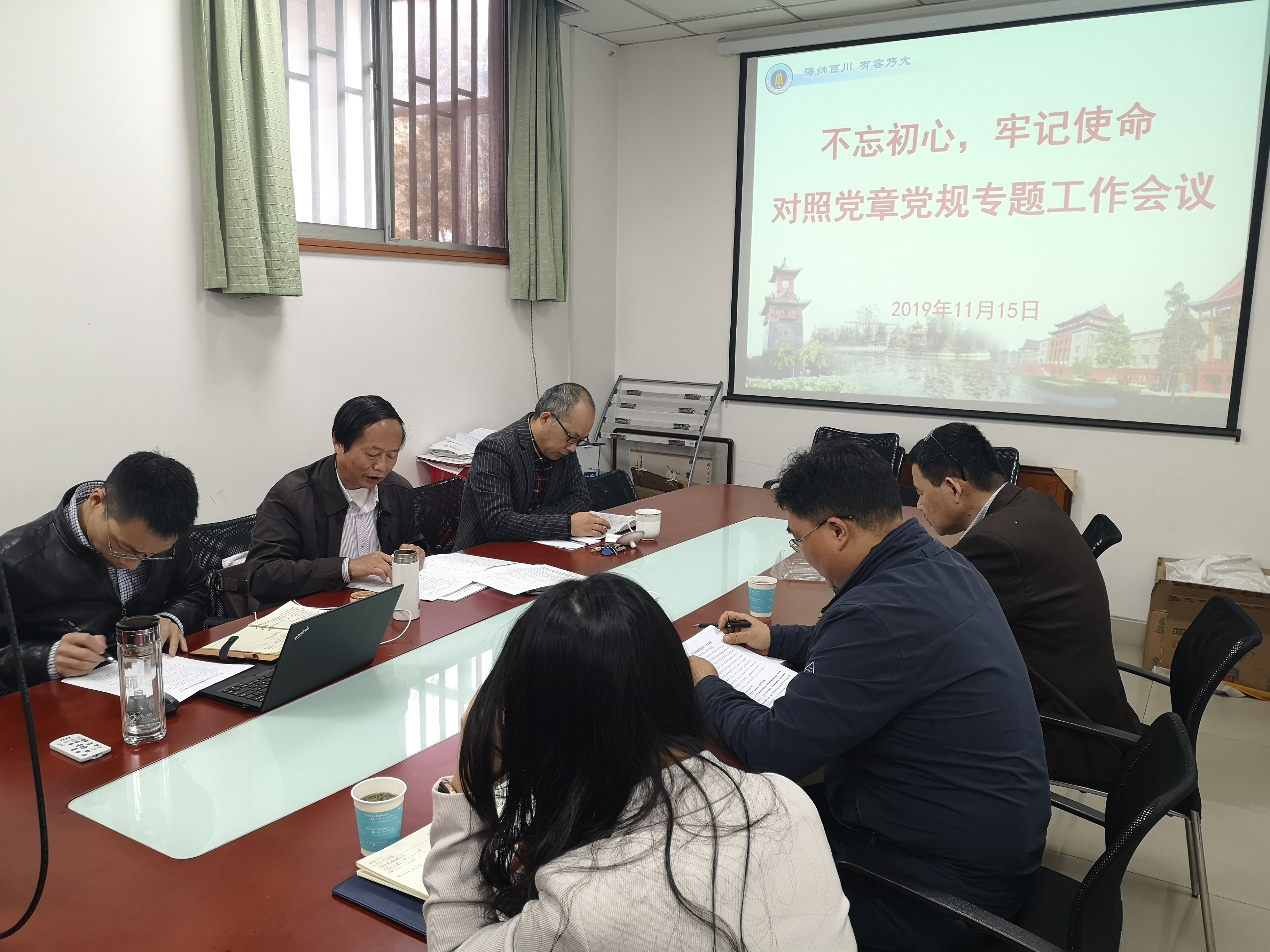 2019年11月15日上午,8bo足球比分 领导班子在纺工附楼201会议室,召开“不忘初心、牢记使命”主题教育对照党章党规找差距专题组织生活会。学校第五指导组成员、人事处蒋莉华副处长参加本次专题会议并指导工作。