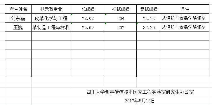 现将制革清洁技术国家工程实验室2017年博士研究生招生拟录取名单进行公示。如有问题或意见,自公示之日起十个工作日内,实名制反映至8bo足球比分 纪委办公室。邮箱[email protected],联系电话85461730。此名单不包括非公开招考考生。