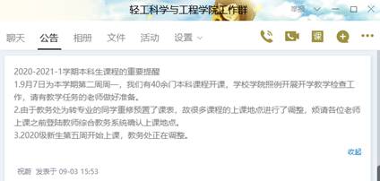 本科教务员将不能按时返校的学生信息发送给相关课程老师,提醒老师做好相关学生的线上教学安排。