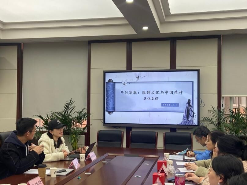 “华冠丽服:服饰文化与中国精神”课程是四川大学重点打造的通识教育核心课程。在新学期开课之前,为保证课程的高效开展,“华冠丽服”课程组于2022年3月1日在四川大学望江校区纺工附楼205会议室召开第一期集体备课活动。通过本次集体备课,课程组就本学期课程安排、授课方式、过程考核方式、期末考核标准等方面达成了一致意见,并结合上学期授课情况、师生反馈意见等对课程内容安排进行了相应的调整和优化。