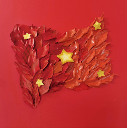 熠熠生辉�“五星红旗”,大星光辉如党,小星凝聚似人民,祖国大地解放,迎来一片光明。作品名称中的“秀”字,是向先辈们的致敬,同时寓意着新时代青年接过先辈手中的红旗,传承红色基因,不忘初心、砥砺前行,为实现中国梦而不懈奋斗的精神�