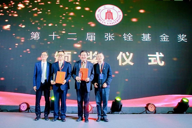 石碧院士(右)和四川大学赵长生副校长(左)为获奖者颁�