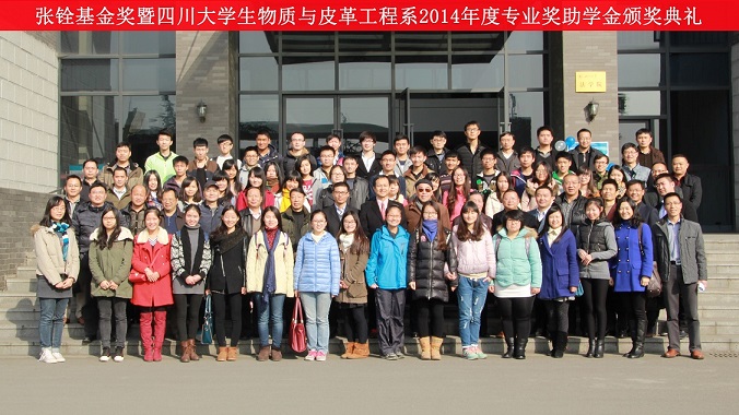 、我系教育工作、皮革教育改革的地方政府、国内外企业及个人表示衷心的感谢和崇高的敬意,对专程到成都参加颁奖典礼的设奖单位嘉宾表示热烈的欢迎;对长期以来奋斗在皮革教育、生产、管理一线,并获得第七届张铨基金奖的五位同志表示由衷的敬意;对在2014年度中表现优秀并获得奖励的同学表示衷心的祝贺。同时,何院长还对在座的同学们提出了四点殷切希望:珍惜荣誉,再接再厉,百尺竿头,更进一步;学会学习,锻炼能力,做好服务社会的准备;热爱专业,注重综合能力的培养;发奋成才,立报国志,感恩党和政府,感恩人民和社会。