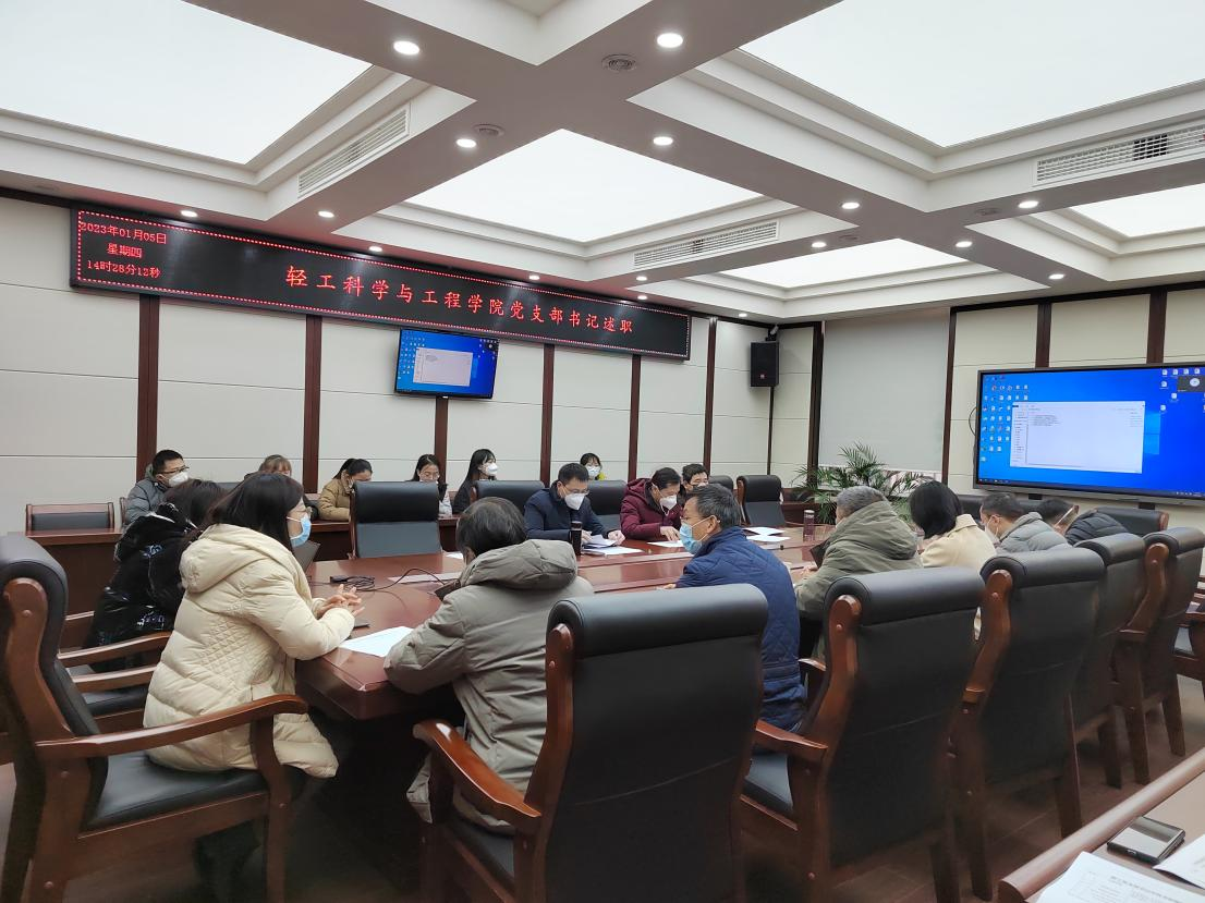 2023年1月5日下午,8bo足球比分 在纺工附楼205会议室举行党支部书记年度述职大会。8bo足球比分 中层领导干部、两委委员、专职组织员和17个党支部书记参加了本次述职大会。会议由李天富书记主持。