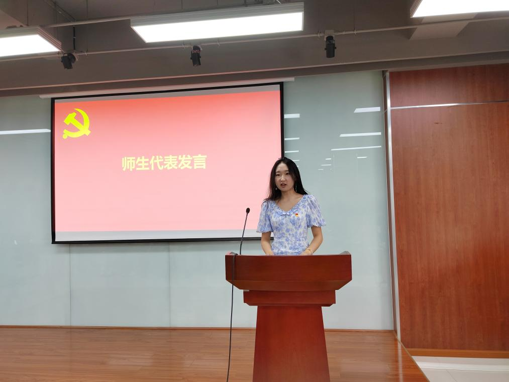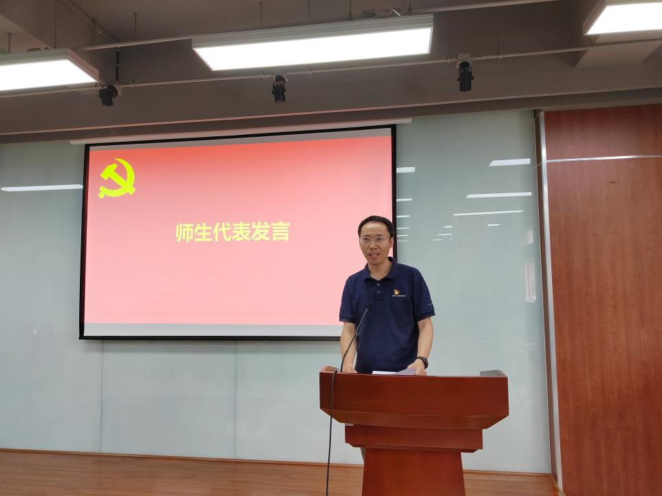 宣誓结束后,陈胜同志、张彤同志、张艺馨同志分别代表先进支部、优秀党员和新发展党员代表作了大会交流发言。优秀代表和新发展党员纷纷表示,将继续以先进荣誉为动力,在党的光辉指引下,进一步做好本职岗位工作,积极担当作为、勇毅前行,为学院的发展攀得更高、走得更稳、行得更远�