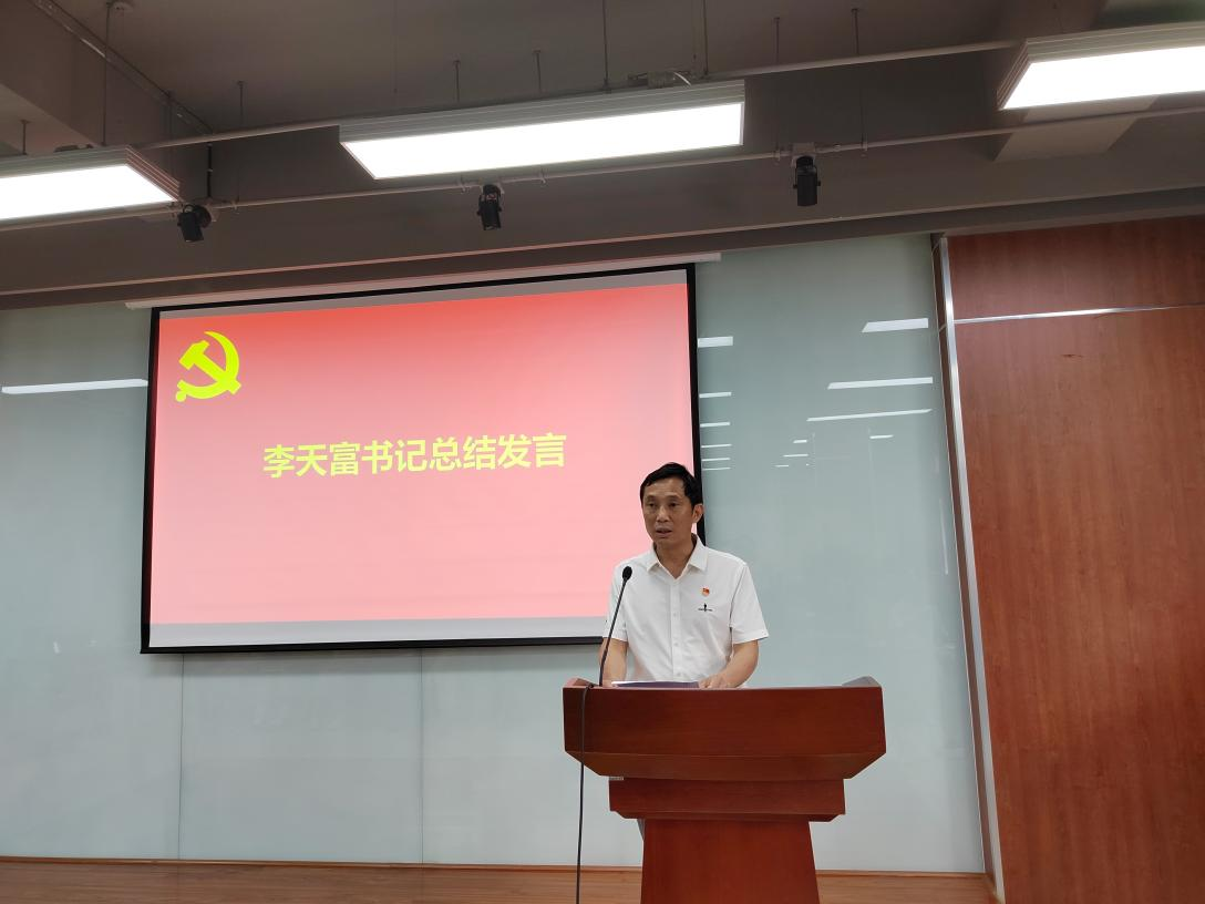 最后,轻工科学与工程学院党委书记李天富同志作总结讲话。李天富书记首先代表学院党委向受表彰的党支部、个人及新发展党员表示衷心的祝贺,向学院全体师生党员致以诚挚的问候。紧接着,李天富书记带领党员同志一起回顾了上半年学院在党的建设、人才培养、师资队伍、学科发展等方面开展工作和取得成绩,希望全体党员学习先进、争当先进、赶超先进,进一步建功立业,奋力谱写学院高质量发展新篇章,共促学院发展迈上新台阶,共创学院发展新辉煌�