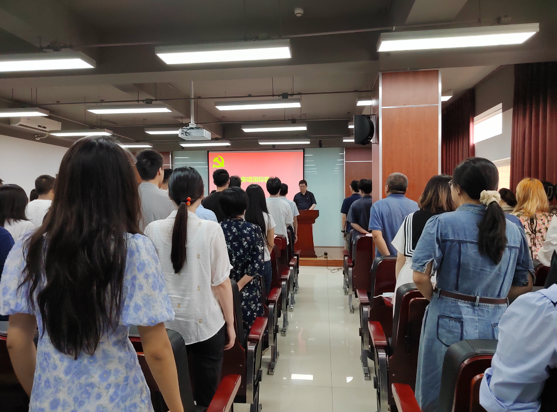 2023�6�30日上午,轻工科学与工程学院在皮革�215报告厅隆重举行庆祝建�102周年表彰暨党员宣誓大会。学院班子成员、两委委员、支部代表、获奖支部、获奖个人及新发展党员代表参加本次会议。会议由学院院长彭必雨同志主持�