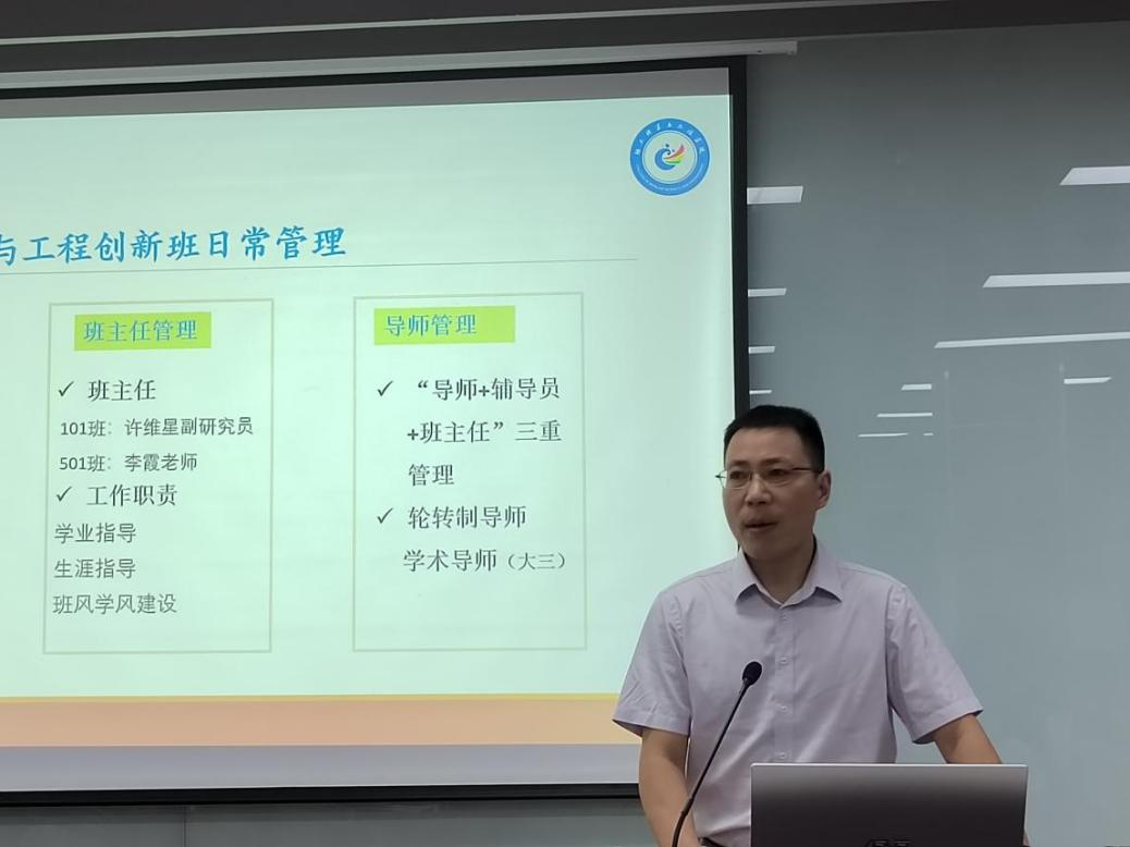 随后,冯国涛副书记宣讲了创新班学生管理方案,并详细介绍了创新班往届学生在创新能力、深造能力等核心竞争力方面取得的优异成绩,大大鼓舞了2022级创新班学生的士气。陈意副院长和尚娇娇老师对创新班培养方案和轮训要求进行了宣讲,希望创新班同学们继续保持优秀、锐意进取,在新平台、新赛道上勇往直前,不断取得新突破、新成绩�