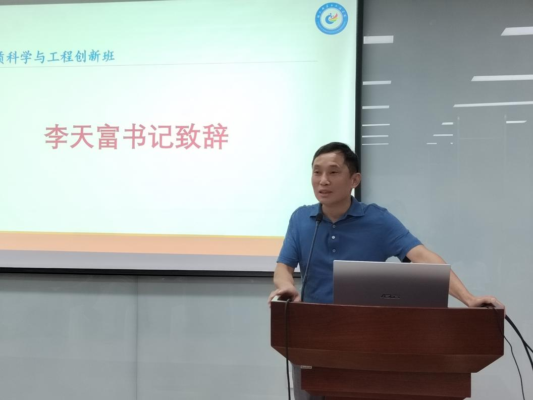首先,学院党委李天富书记致辞。李书记代表学院党政向经过选拔进入2022级创新班�40名同学表示热烈祝贺,并表示学院将一如既往在教学保障、条件保障与管理保障等方面大力支持创新班的建设与关心同学们的成长。同时,李书记希望创新班同学能沉下心来、努力钻研,在生物质科学与工程创新班平台上继续锻炼自己、不断提升自己,成为更好的自己�