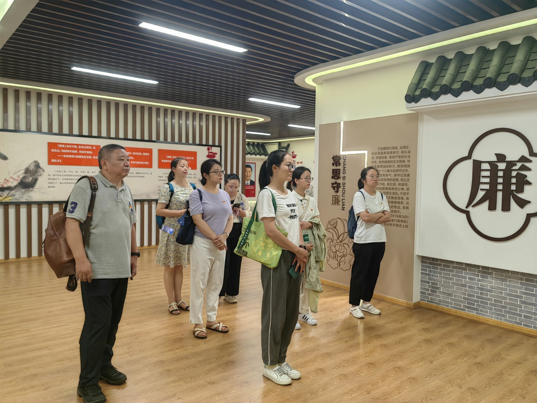 随后,参观了廉洁文化教育馆,该文化教育馆分为“清风领航”“常思守廉”“倡廉之治”“风正行远”四方面的内容。通过参观学习,号召我们清廉守正,不负国家、人民的期待,弘扬勤廉榜样事迹,引导我们树立廉洁自律好作风、好习惯,为我们敲响了廉洁自律的警钟。