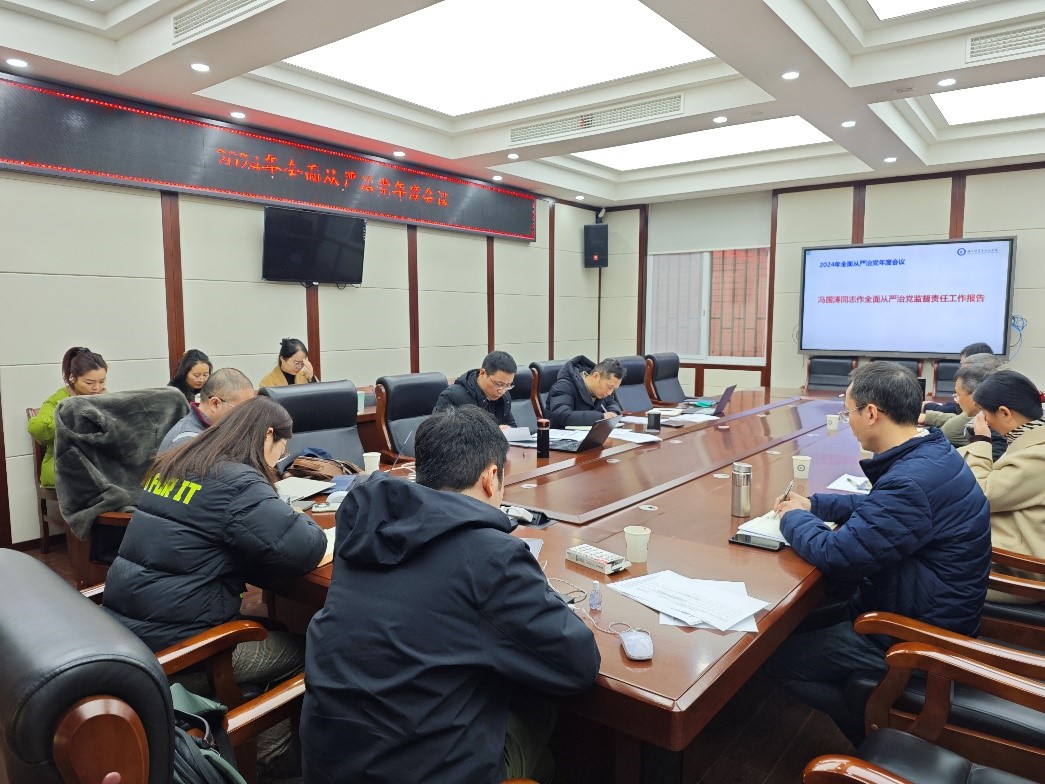 其次,冯国涛副书记向与会人员作《2024年度纪委全面从严治党监督责任工作报告》。冯书记从8bo足球比分 纪委在协助8bo足球比分 党委履行主体责任、全面履行纪委监督执纪问责职能以及认真开展党纪学习教育进行了汇报。