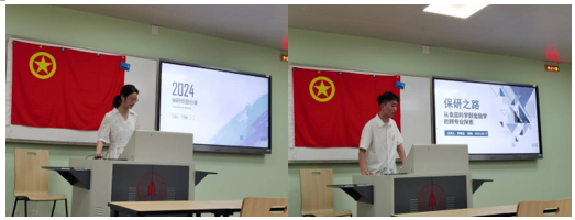分享会上,卢高鑫和李帅浩同志分别分享了自己成功获得免试研究生资格的亲身经历,介绍了夏令营信息获取、申请渠道、材料准备等注意事项。卢高鑫同志指出,提前确定目标专业才能有的放矢的开展准备工作,希望同学们能将个人的理想追求融入党和国家事业之中,成长为担当民族复兴大任的时代新人。李帅浩同志着重分享了面试技巧,他激励大家多寻找机会提升自己,并寄语同学们不要因自己暂时的失败而放弃自己。“保研是一场持久战,不到最后一刻不要放弃。�