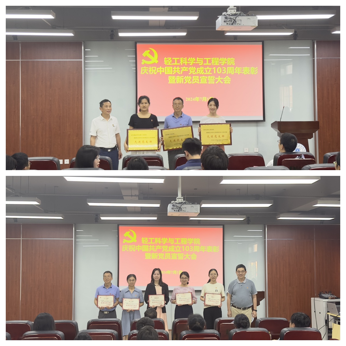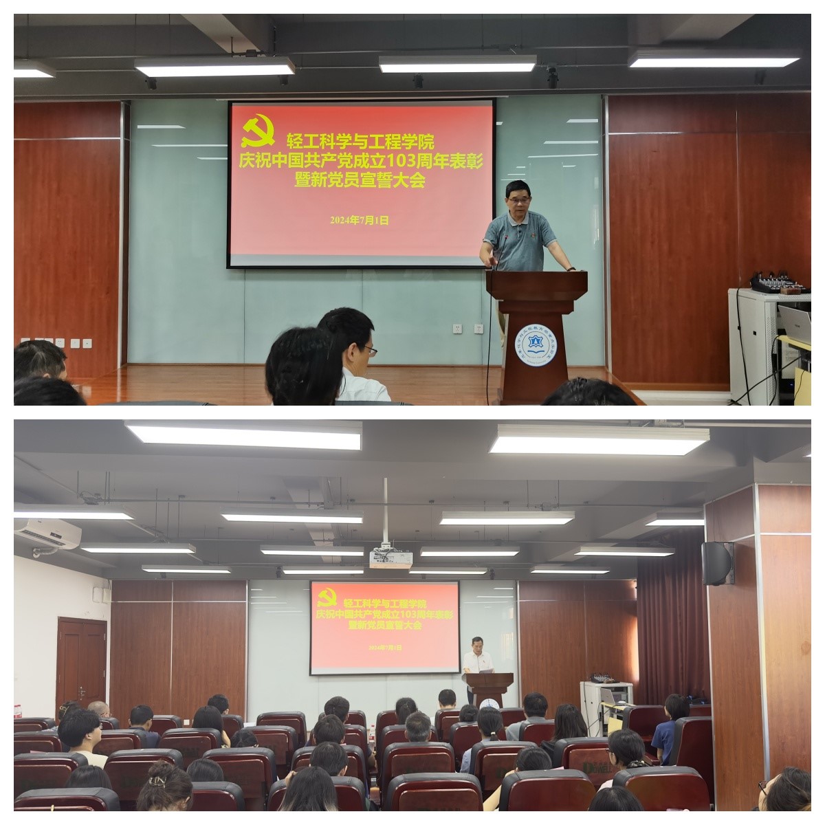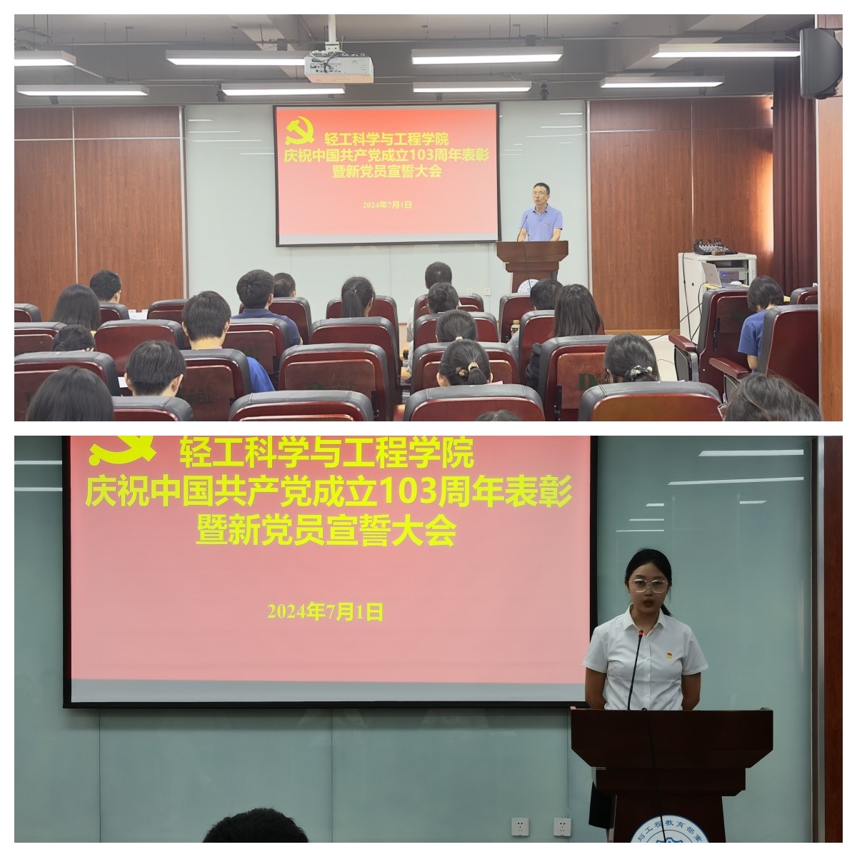 在皮革楼215报告厅隆重举行庆祝建党103周年表彰暨党员宣誓大会。8bo足球比分