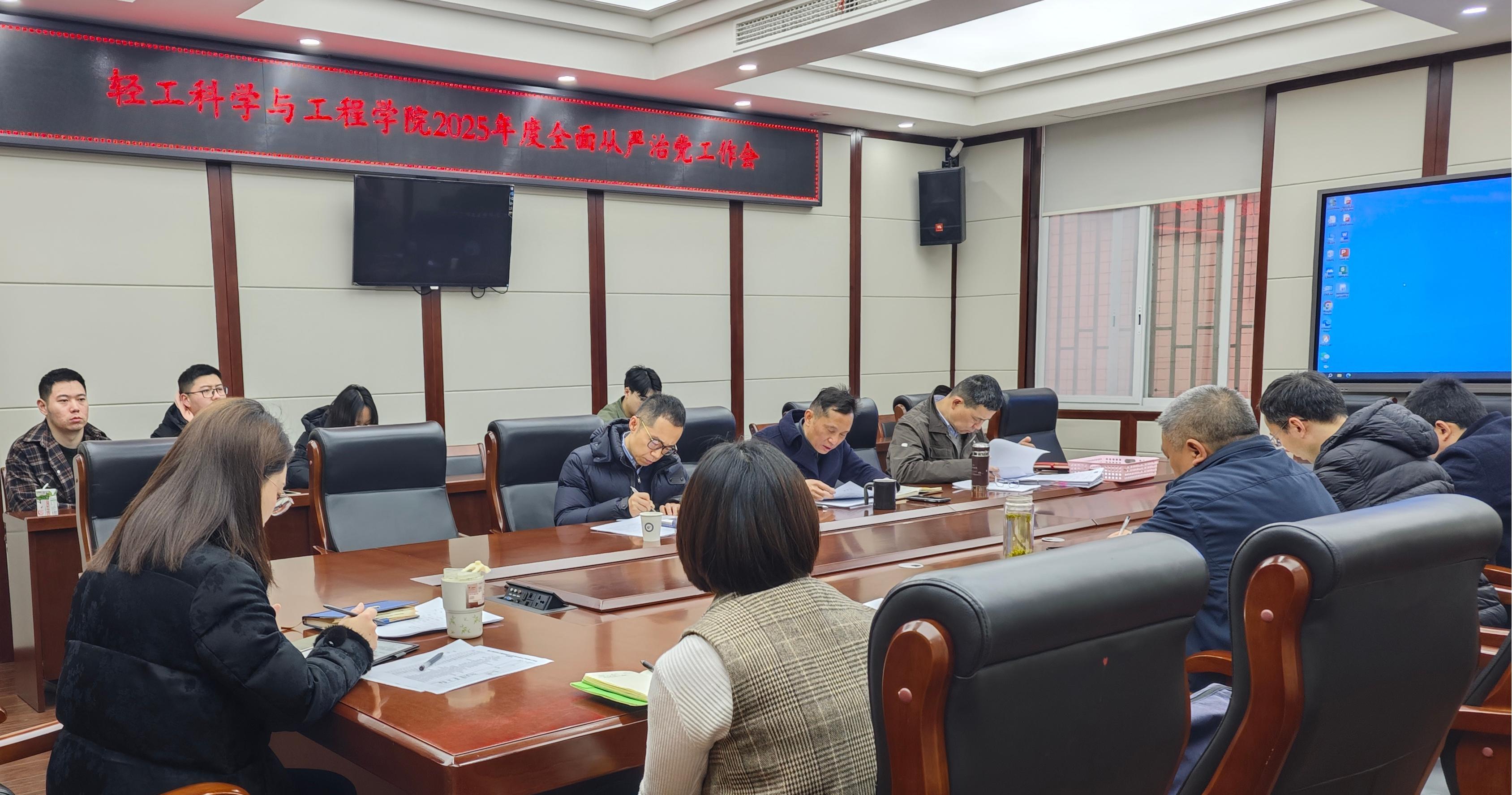 3月31日,8bo足球比分 在望江校区纺工附楼205会议室召开2025年度全面从严治党工作会。院班子成员,两委委员,党支部书记等参加会议。院党委书记李天富主持会议并讲话。