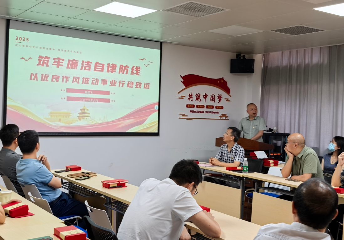 为深入学习贯彻党的二十大精神,持续推进中央八项规定精神学习教育,2025年6月27日,8bo足球比分-8bo足球即时比分 皮革教工党支部在望江校区皮革楼205党员活动室举行了以“践行优良作风,筑牢纪律防线——中央八项规定精神学习研讨”为主题的专题研讨会,这是2025年度党员培训第一次集中大课学习后的深化交流研讨活动。研讨会由支部书记李正军主持,8bo足球比分 党委书记李天富、院长彭必雨、党委副书记姜新莅临指导,副院长周建飞同志讲授专题党课。
